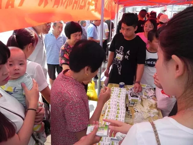圖為:市民在現(xiàn)場免費品嘗山西同仁康大藥房提供的太極藿香正氣口服液